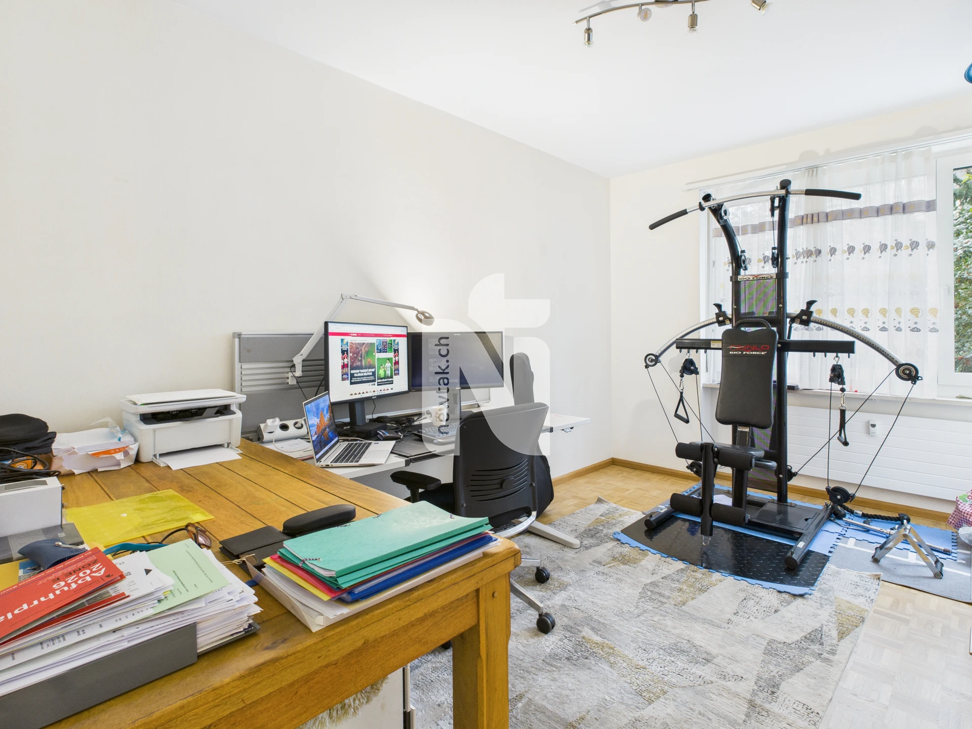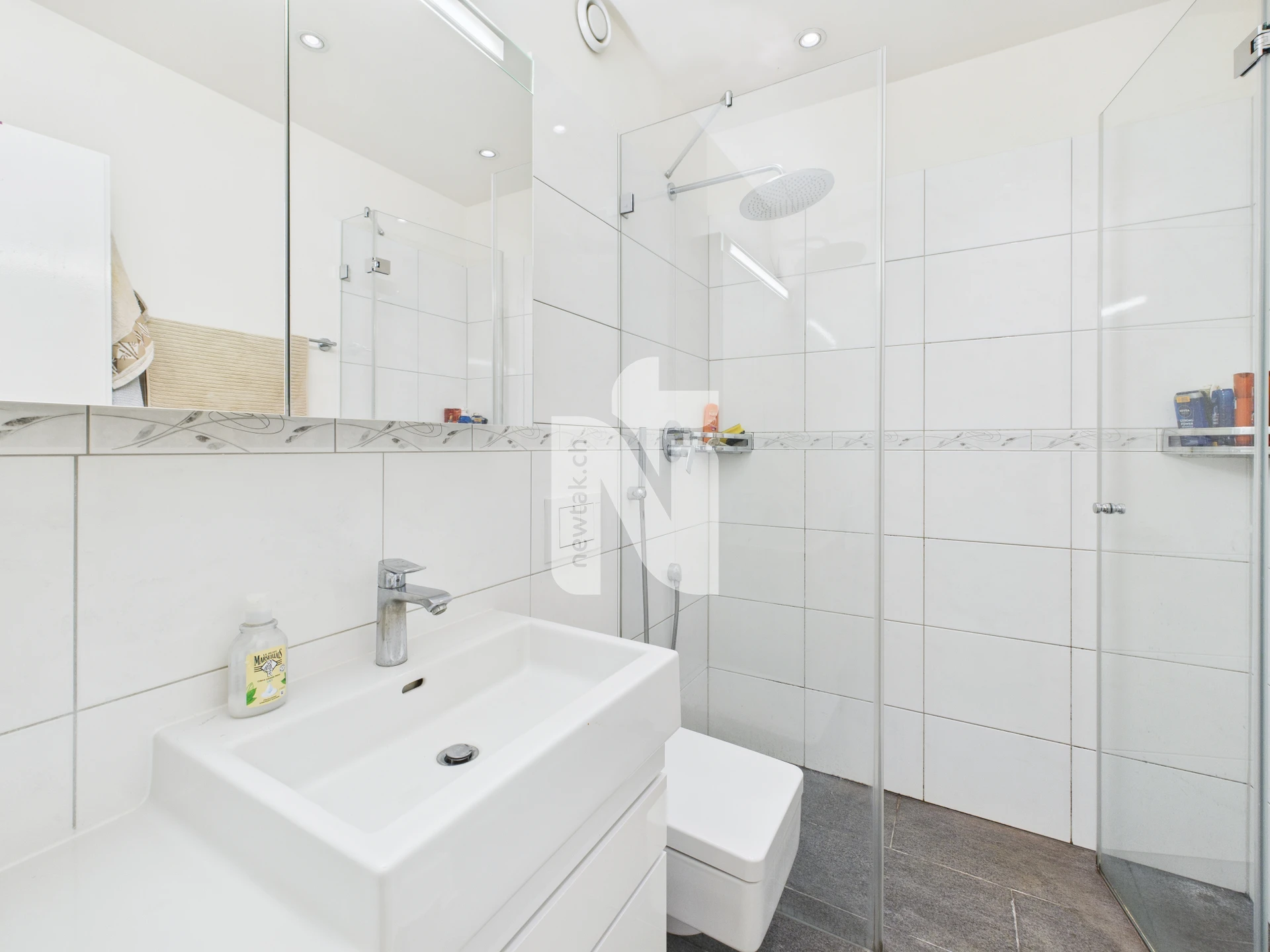 Grosszügige Fensterfronten sorgen für viel Tageslicht und schaffen auf rund 100 m² Wohnfläche ein angenehmes Wohnambiente. Das modern renovierte Badezimmer mit Dusche sowie das ebenfalls erneuerte Gäste-WC präsentieren sich in sehr gepflegtem Zustand.