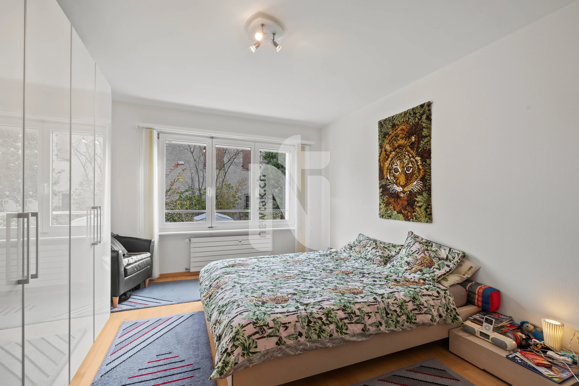 Die Wohnung verfügt über drei gut geschnittene Zimmer mit vielfältigen Nutzungsmöglichkeiten, welche sowohl als Schlafzimmer, Kinderzimmer oder Bürozimmer genutzt werden können. Ein grosszügiges Familienbad mit WC, Fenster, Badewanne, Dusche und Doppelwaschbecken sowie ein separates Gäste-WC sorgen für zusätzlichen Komfort.