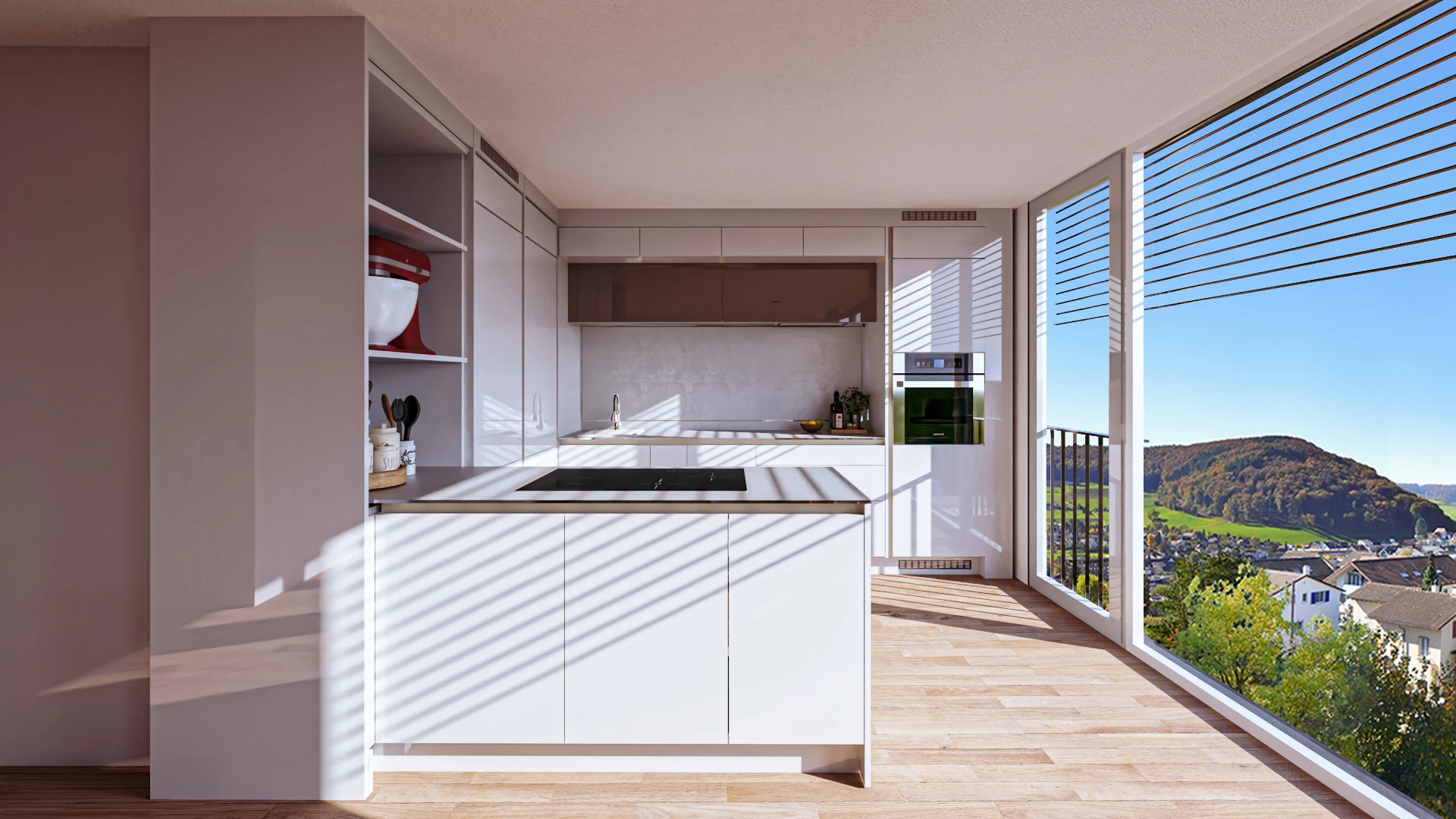 Der grosszügige Wohn- und Essbereich überzeugt durch viel Platz und die offene Küche, die für hohen Komfort sorgt. Vom Wohn- und Essbereich aus gelangt man auf die überdachte Terrasse, die mit dem rund 30 m² grossen Garten verbunden ist und viel Raum für Entspannung bietet.