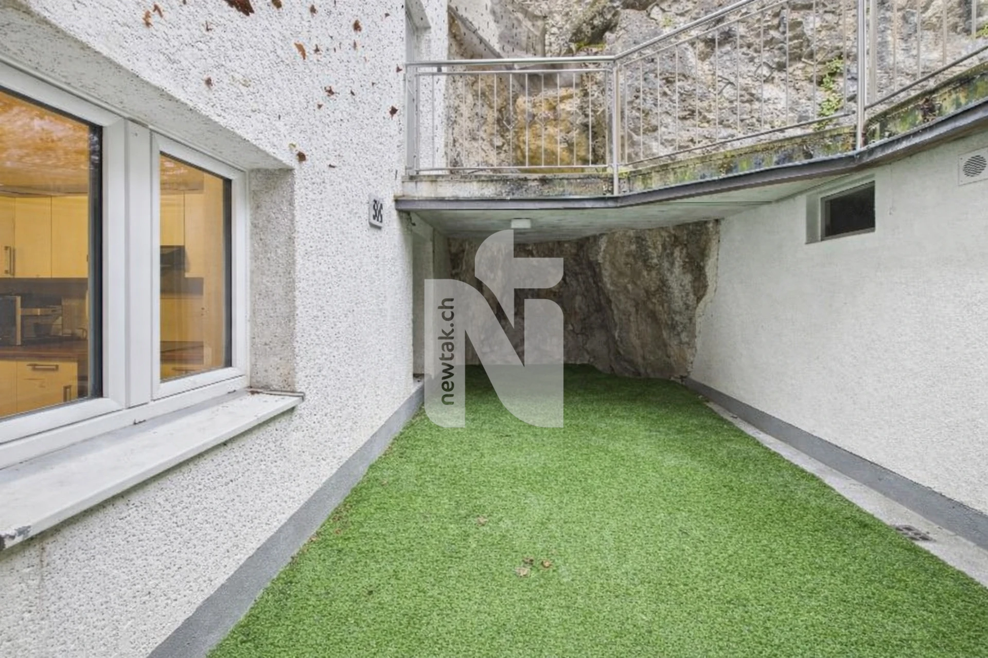 Über die Terrassentür gelangt man auf die Aussenterrasse mit Blick auf den Naturfels und Zugang zum eigenen Kellerraum. Die Fenster wurden im Jahr 2017 erneuert und verfügen über eine moderne 3-fach-Verglasung.