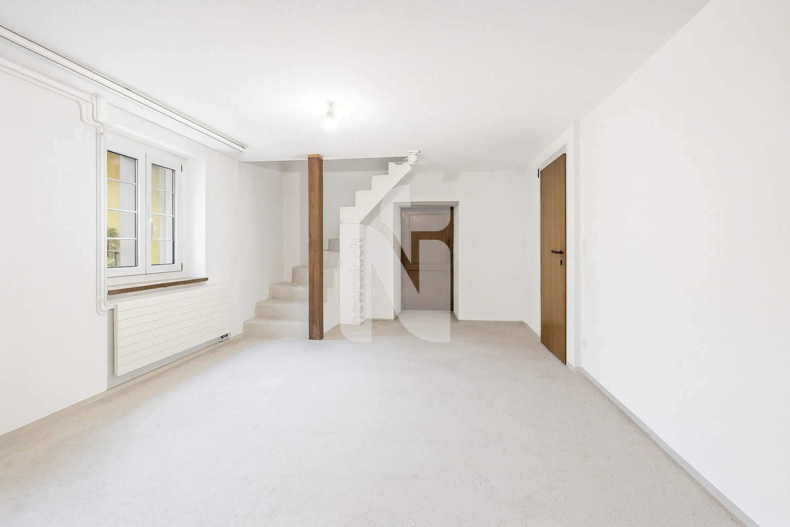 Das grosszügige Grundstück mit 1'321 Quadratmetern, der gemütliche Kachelofen, die hellen Wohnküchen und der weitläufige Garten schaffen ein einladendes Zuhause mit viel Potenzial.