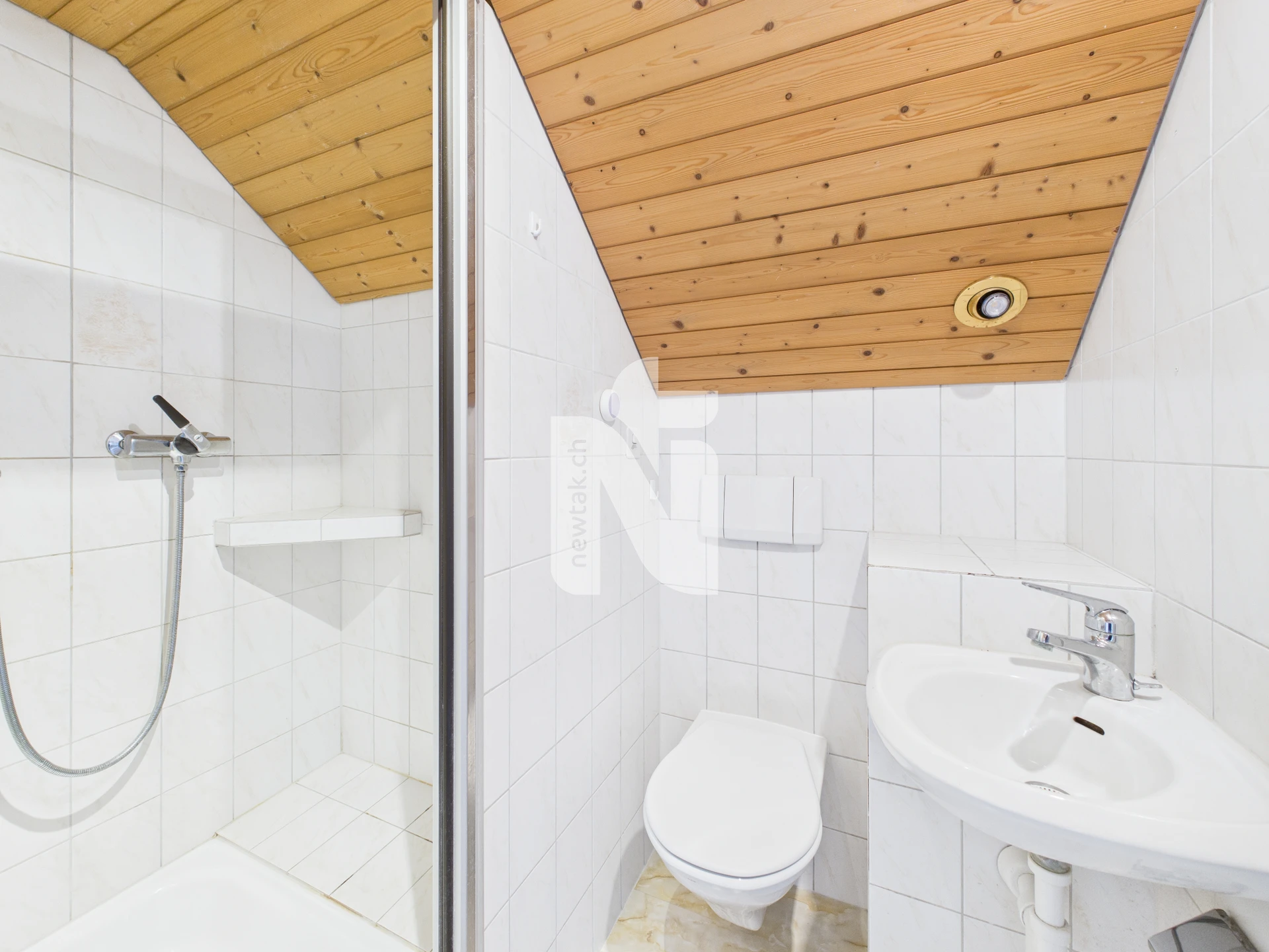 Die Wohnung verfügt über zwei Badezimmer, eines mit Dusche und eines mit Badewanne; eines der Badezimmer ist zudem mit einem Waschturm ausgestattet. Zwei WCs ergänzen das Raumangebot. Vier vielseitig nutzbare Zimmer bieten ideale Rückzugsorte, eines davon mit direktem Zugang zum eigenen Balkon und einem gemütlichen Kachelofen. Einbauschränke in allen Zimmern sowie im Eingangsbereich sorgen für praktischen Stauraum, teilweise ist die Wohnung mit Lichtereinbauspots versehen.