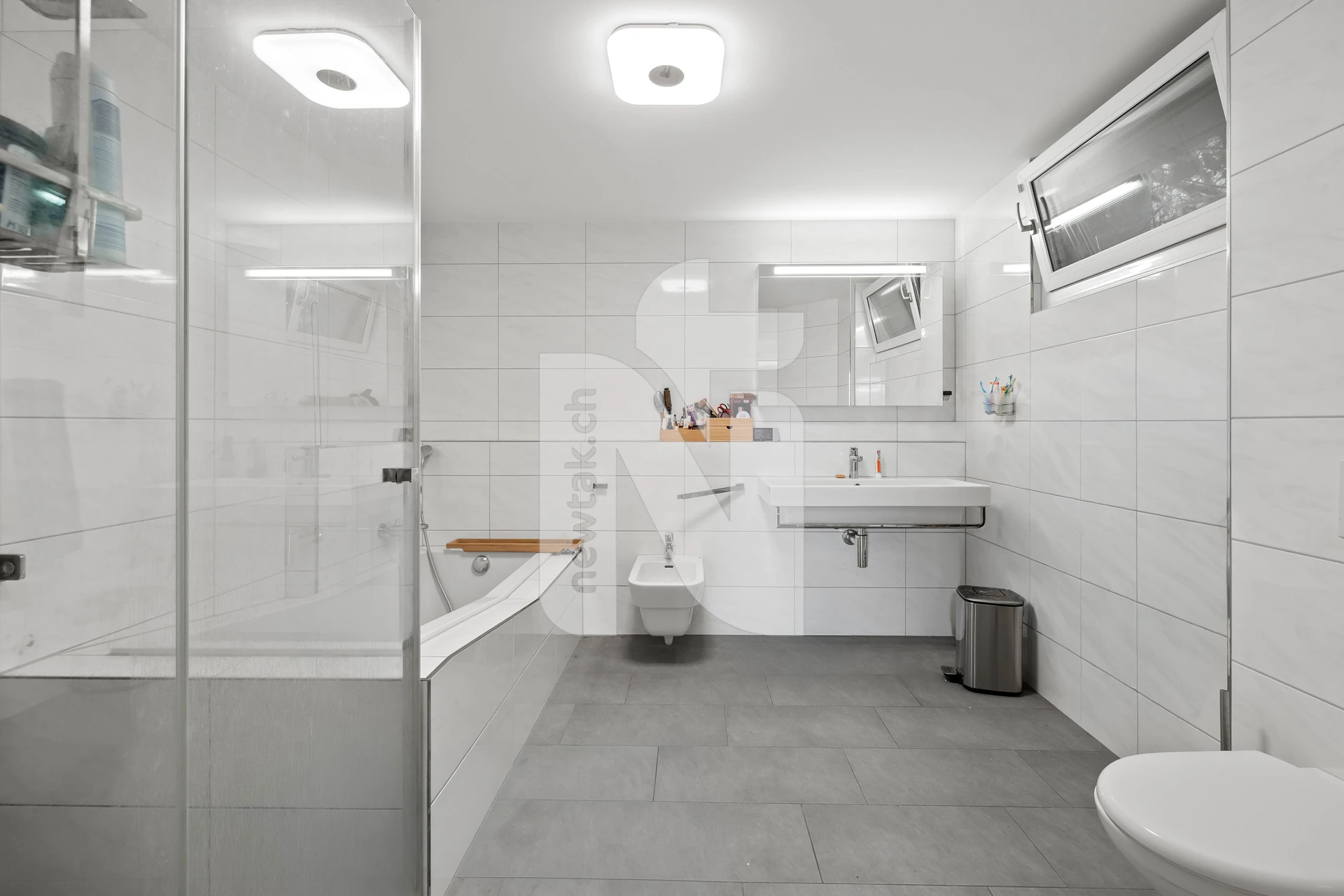 Im Untergeschoss befinden sich drei vielseitig nutzbare Zimmer, die sich ideal als Schlaf-, Büro- oder Kinderzimmer eignen. Alle drei Zimmer haben direkten Zugang in den grosszügigen Garten und den holzbeheizten Hot Tub. Das Haus verfügt über zwei Badezimmer. Eines mit WC, Lavabo und Dusche und das andere mit Dusche, Badewanne, WC, Lavabo und Fenster.