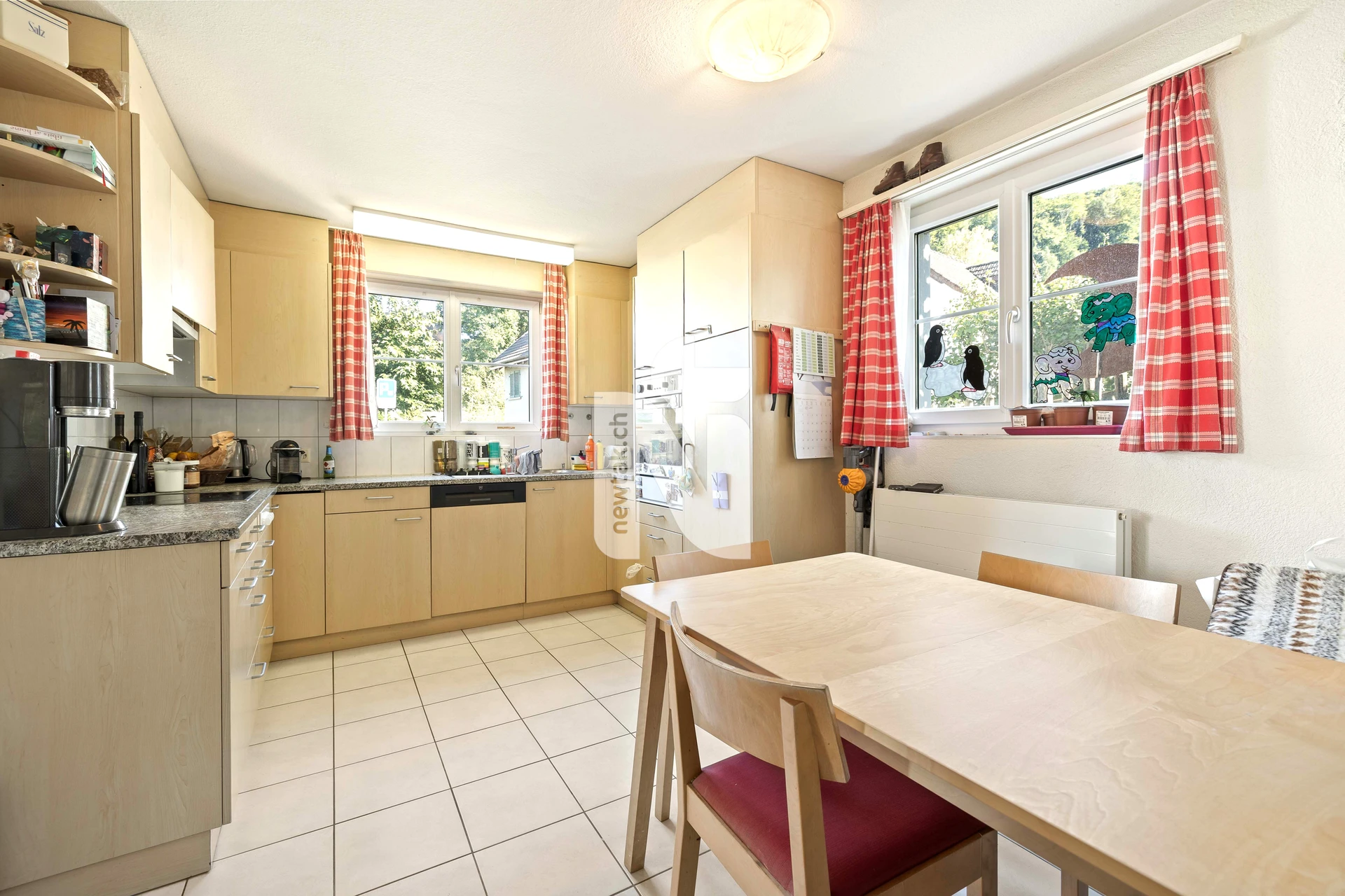 Im Erdgeschoss erwarten Sie ein Badezimmer mit Fenster, ein Gäste-WC mit Fenster, eine grosszügige Küche mit Essbereich sowie ein separater heller Wohnraum.